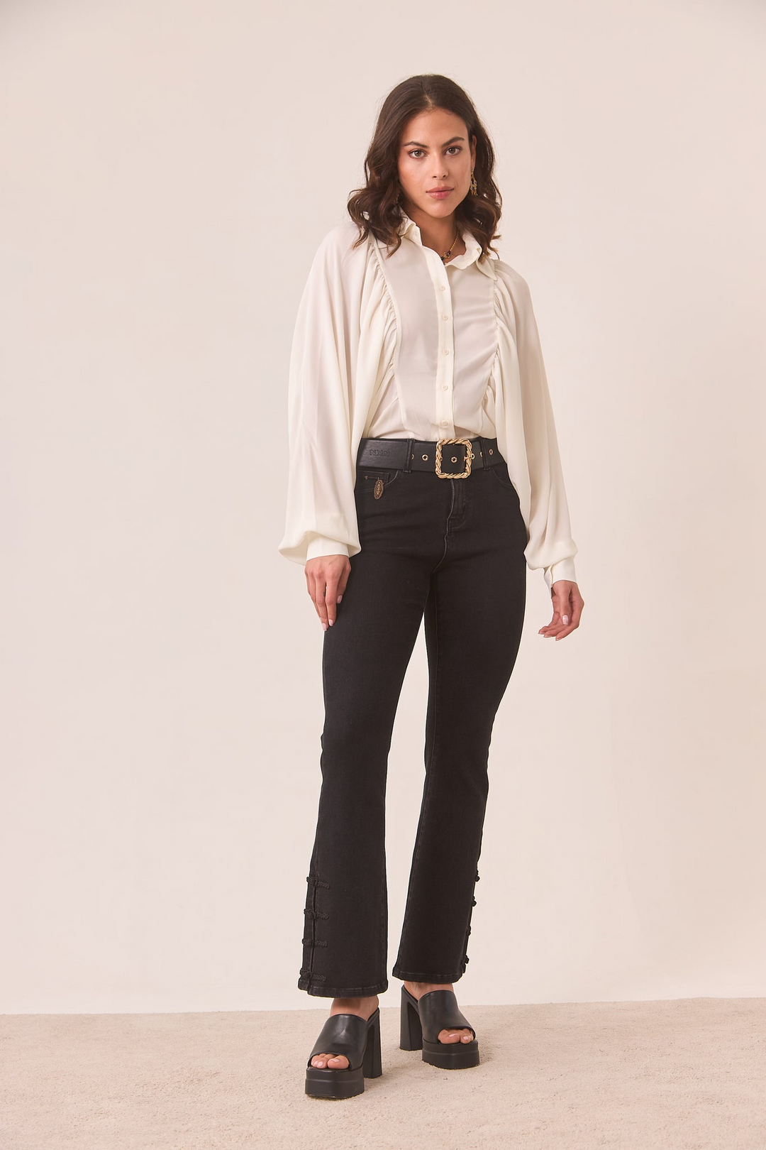 BOOTCUT JEANS WITH ORIENTAL BUTTONS - BLACK