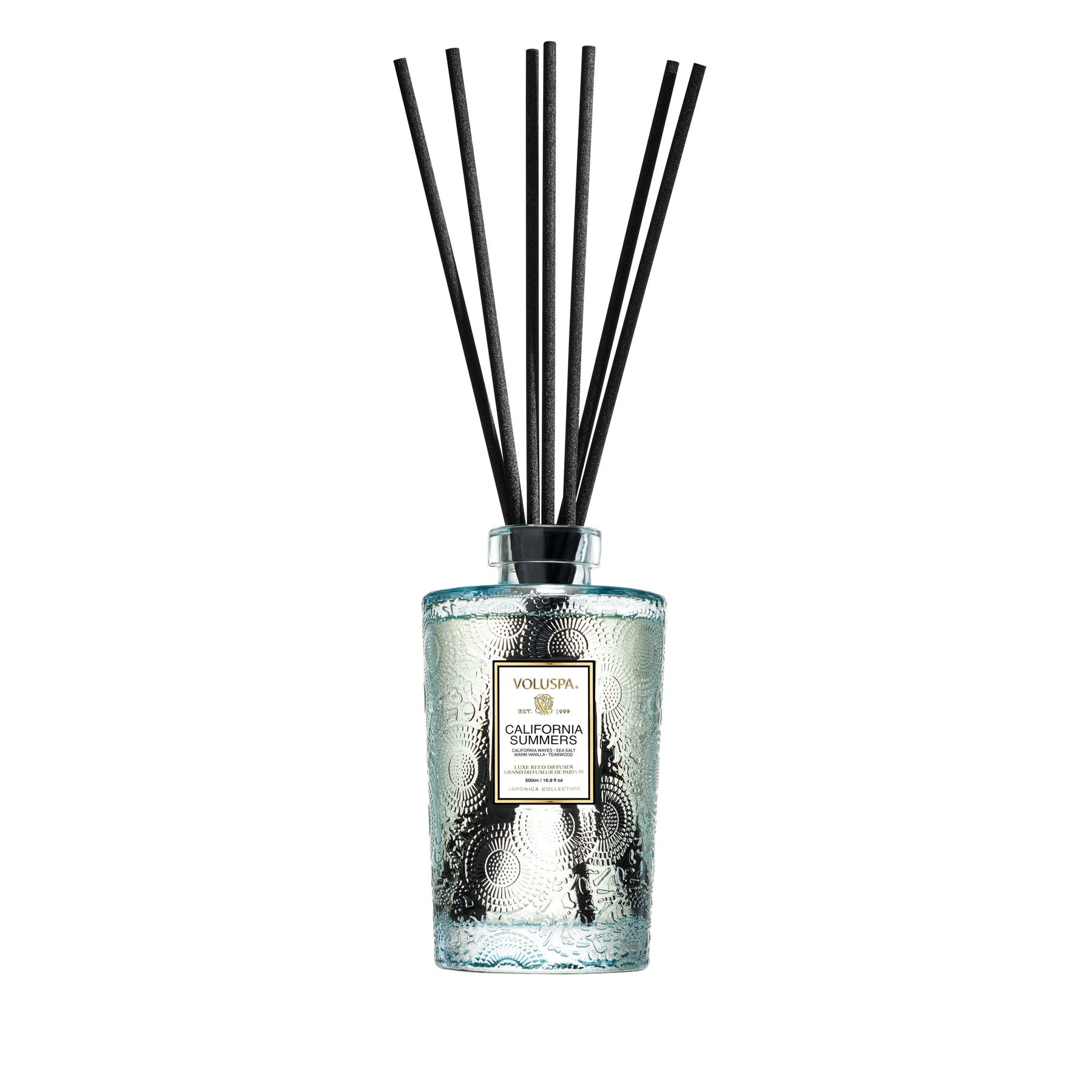 Designed using 8 wide gauge, black high absorbency reed sticks, the 500 ml larger-than-life Reed Diffuser is perfect for larger spaces. Signature Japonica fragrances captured in elegantly embossed glass, for an always-on ambiance.